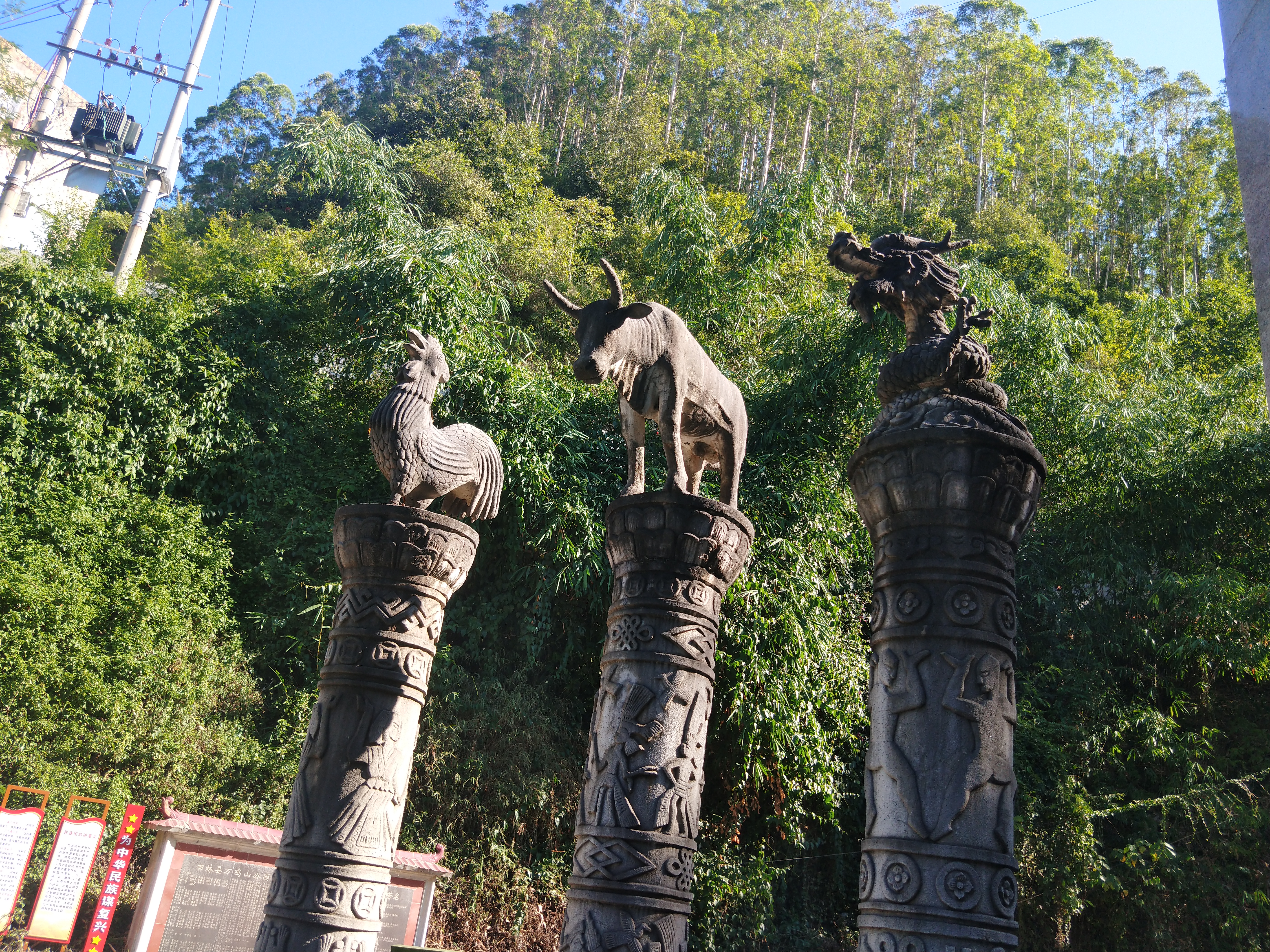 伝説では、遠い昔、チワン族の始祖である布洛陀(ブーロートー)がこの山を通り過ぎたとき、この地域の優美な風景を見てたいそう愛着を感じたという。そのため、ブーロートーは自分の使い人の一人に命じて、この地域に作物の栽培や家禽の飼育を教え、この山に家屋を建てることを指示した。一年後、ブーロートーがこの山を再訪したときには多くの家が建ち、家禽の鶏の声が至る所で聞こえ、その様はまるで一萬羽の鶏が飼育されているようであったことから、「萬鶏山」と名がついたようだ。その後、「鶏 jī」と「吉 jí 」の音が似ていることから、縁起の良い「吉」に改称されたのだろう。今では、萬吉山森林公園は田林県の県民の娯楽や休閑の場所となり、田林県の観光資源にもなりつつある。萬吉山森林公園の中にある十二支の石彫(写真4)や観日坊(お日様を見る場所)にある千六十六段の石階段(写真5)が人気のスポットである。