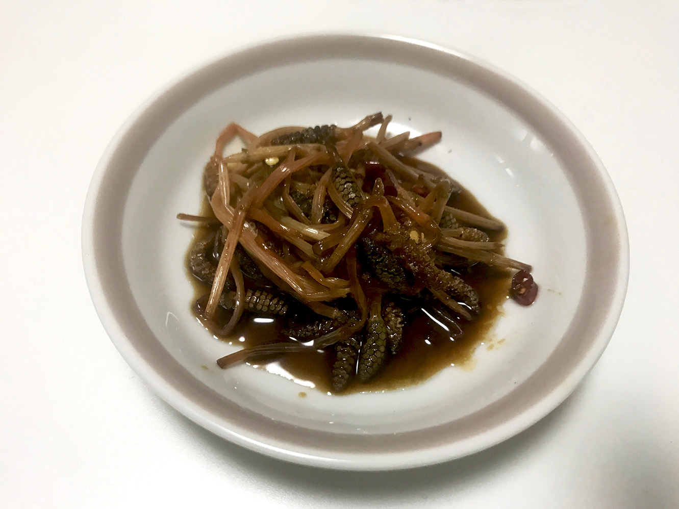 5~6月は気候の変動に体調が追いつかず、クサイチゴ・クワの拾い食いで平常の活動を終了した。下処理がいらない果物は、採集中につまみ、調理中にまたつまみ、と何かしらできあがる頃には随分と目減りしてしまうのが問題だ。6月頭のアユの解禁に備え竿の入手は済ませていたのだが、7月初旬現在32度超えの高気温が連続しているため、熱中症に弱い筆者が次号にて釣果を報告できるかは不明である。駅付属のショッピングセンターで閉店前に叩き売られていたチアユをミザンショウと甘露煮にしたものは、文句なしの出来であった。とはいえ自分で捕まえた新鮮なアユを食べてみたい。なお、近所の並木をビワと間違え、実がなるのを待つ間に旬を終えてしまったのは痛恨だった。調べてみるとホトノキのようだ。来年までにはビワとサンショウの木を見つけておきたい。