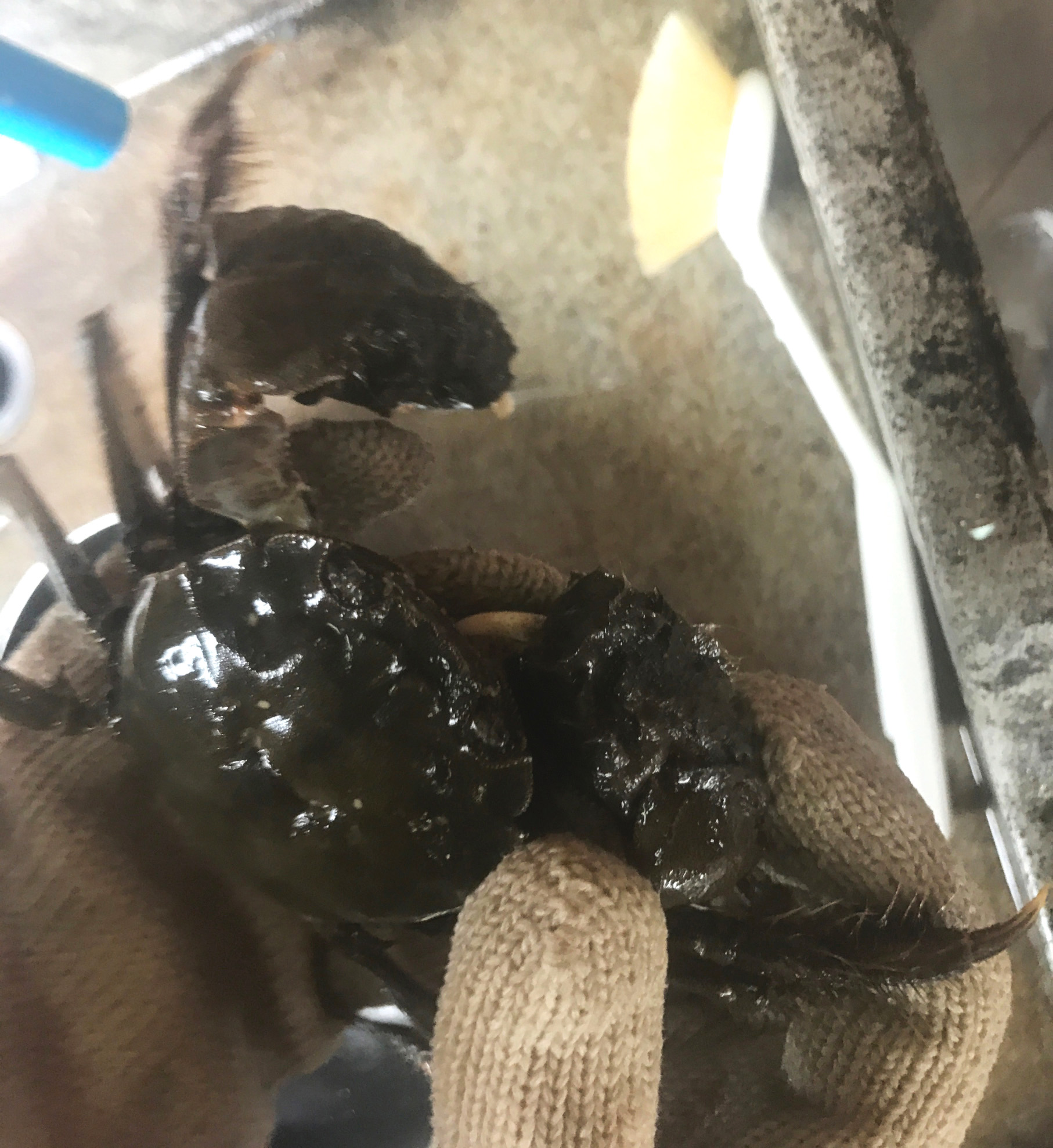 その後、夜が明けるまでの間に、15~20cmほどのモクズガニが2杯入手できた。ハサミの周りの泥がヘドロに似た不快な匂いを発する。解決法が見つからず、ハサミのみ外したのちにいただけば味噌も足の付根も非常に満足の行く味であった。本来は数日から1週間の泥抜きが必要らしい。