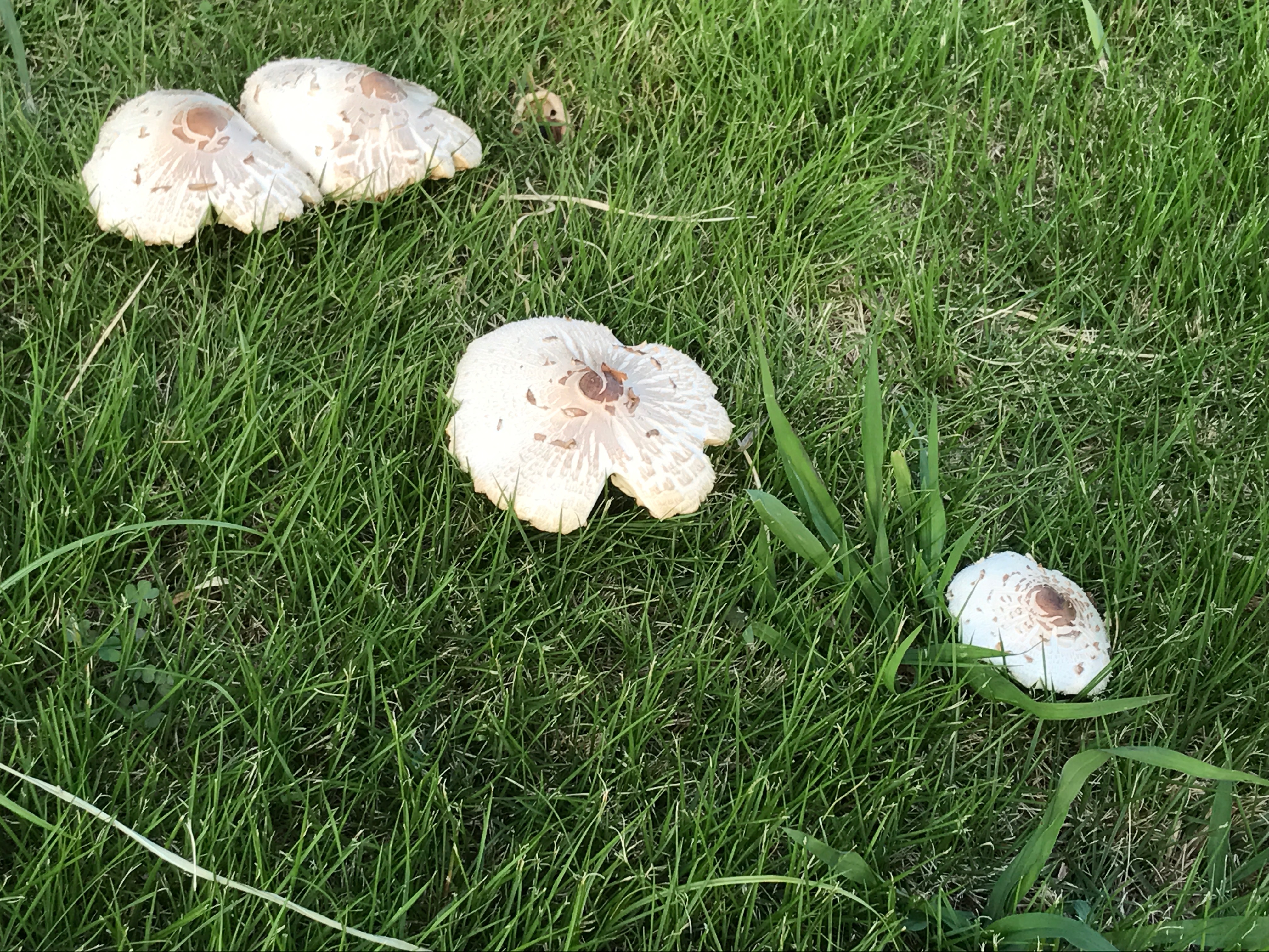 3週間ほど後、遠くから知人に不思議そうな顔で見られつつ、ギンナンをかぶせた土をよける。微生物の働きには1週後に確認したときから特段判別可能な進捗は見られない。そろそろ月も後半である。なにがしかさっと食べられる ものを手に入れたいと考えていた所で、春に見つけた河川敷のオニグルミの木を思い出した。そろそろいい具合になっているのではなかろうか。時間を見繕い自転車で向かう。途中大きな白いキノコを見かけた。ずいぶん肉厚であるがキノコの知識はなく判別は生命に関わると聞くのでこれは見過ごす。あとで調べるとオオシロカラカサタケという毒キノコのようである。