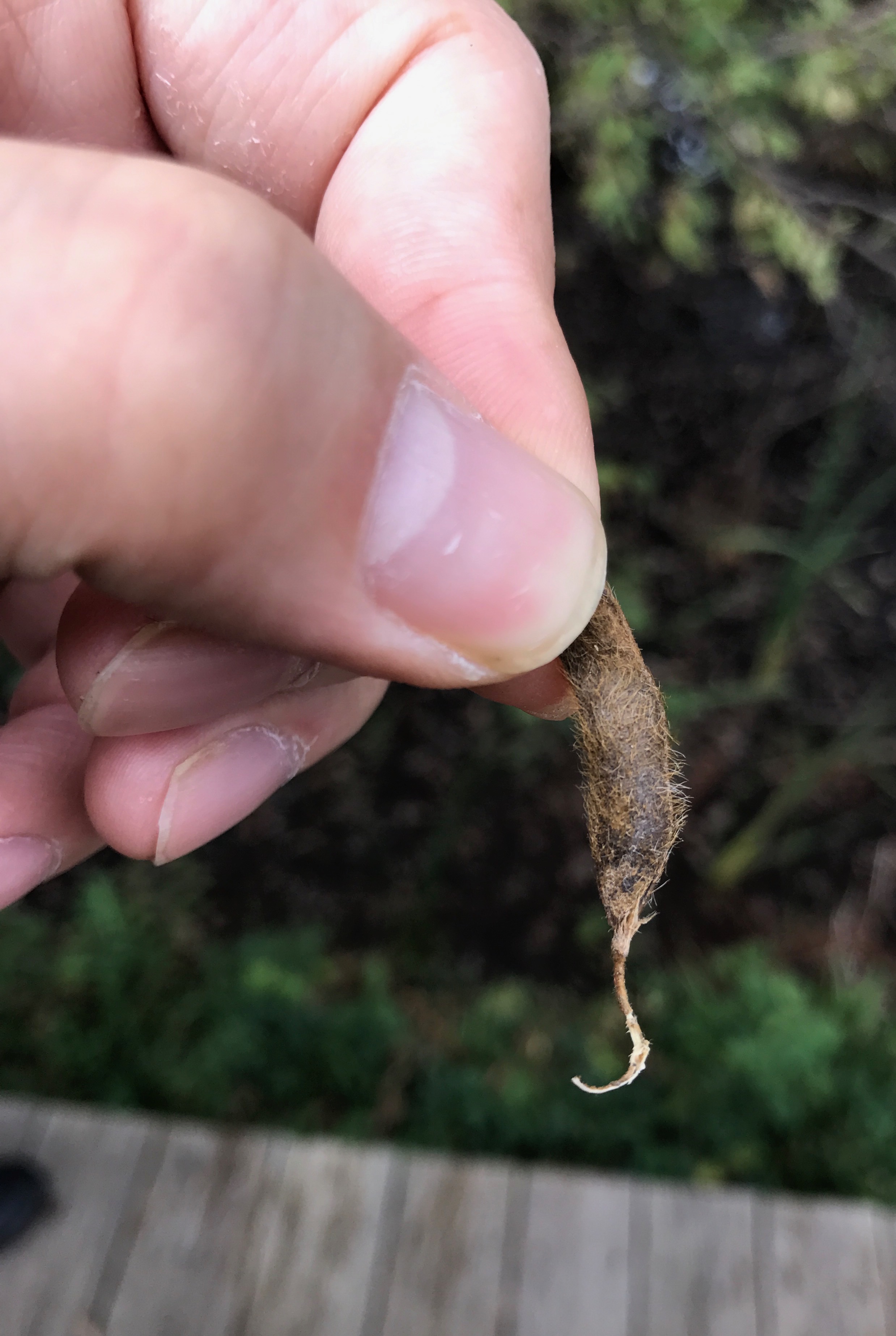 11月中旬、暖かく天気も良いので近所の小川へ散歩に向かう。遊歩道沿いのオギやガマに絡む細い蔓に黒やこげ茶色をした豆のさや状のものがついている。さや状のものは2種類あるようで、細長いものは不用意に触るとすぐに弾け、中の実が飛び散ってしまう。短く平べったいものはさやが比較的短くふさふさと毛が生えている。知人の野草の専門家によると、前者はヤブツルアズキ、後者はツルマメといいそれぞれアズキとダイズの原種らしい。ヤブツルアズキは汁粉にもできるそうであるが、どちらも一粒2mm程度と非常に小さい。20分ほど拾ったところで、手のひらに半分の粒が集まるかどうかかどうかといった具合である。あまり細かい作業を続けるのも気が進まないため、まとめて白米と炊くことにした。帰宅後に試してみれば一昔前に喫茶店で流行った雑穀ごはんのような見た目になる。味は悪くない。