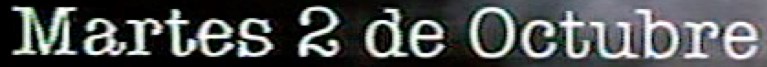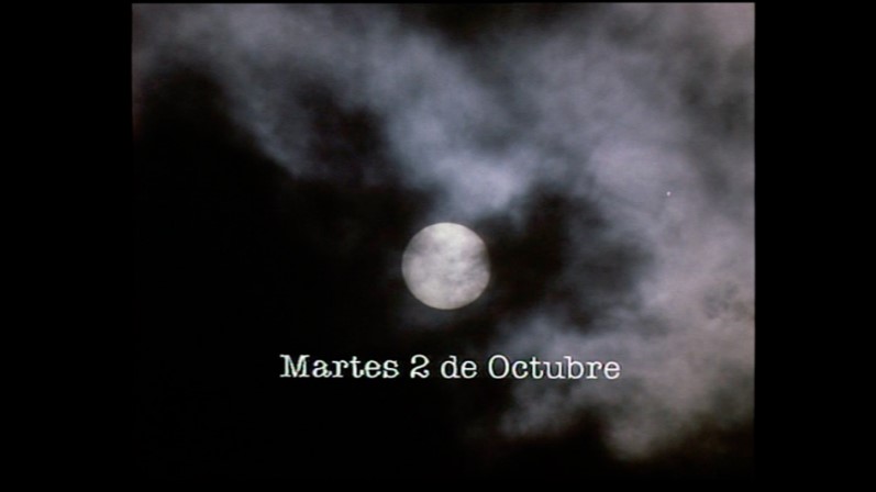 Lunes 1 de OctubreとMartes 2 de Octubreは明らかにウェイトが異なるし、これらとMiercoles 10 de Octubreはフォント自体が異なる。Lunes 8 de Octubreは白くぼやけているのに対して、Viernes 12 de OctubreやLunes 15 de Octubreはことさら白く、その「白」は他の字幕と同じように白いのだろうけれども、背景やフォントの兼ね合いでもって字幕そのものが明るく光っているように見えたりする。白い鉛筆で文字を書くことは明るい鉛筆で文字を書くことと同じではないように、白いことと明るいことは原理的にまったく別のことなのだが、映像媒体において白さと明るさはイコールで結ばれうる。だからこの映画でも白い字幕は明るい字幕として存在しうる。のちに言及することになるのだが、作中で表示される字幕のなかでもとりわけ極端な明るさを放つ字幕が不思議な現象を引き起こす。