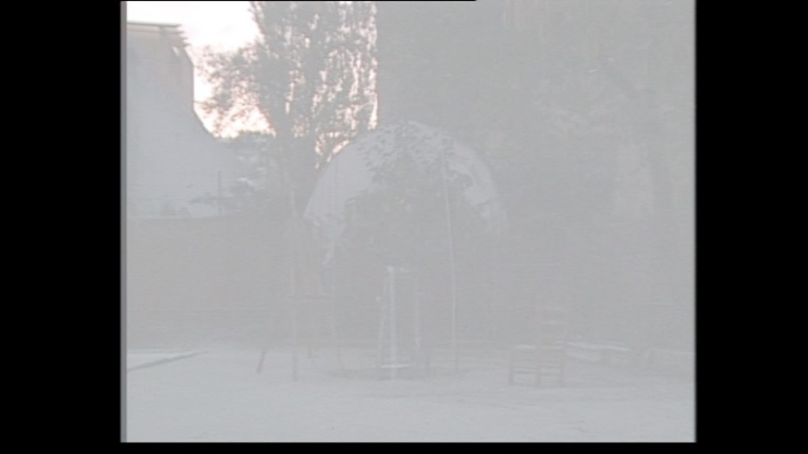 今度はホワイトアウトに意識を向けながら『マルメロの陽光』を初めから見る。9月30日、〈画家〉がアトリエの庭で絵を描いていると、突然、画面全体が何も見えなくなるほど真っ白に飛ぶ。だからといってあたり一面を光で覆いつくすほどの光源と呼べるものは画面内/外のどこにも見当たらない。この日以降、しばしば作中では画面が切り変わるときのエフェクトとして画面全体が真っ白に飛ぶように見える。そのため、ホワイトアウト時の画面はあくまでも画面転換のエフェクトであって物語世界内が鮮烈な光に包まれている訳ではないというような見方を、意識的にせよ無意識的にせよ、通常、観客の誰しもが取るだろう。まさにその裏ではホワイトアウトを物語世界外の現象だと認識させるフィルターが働いている。