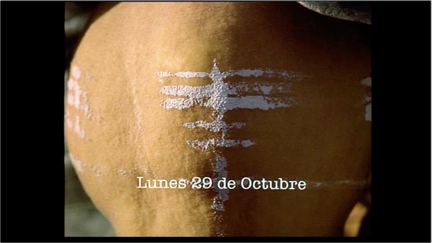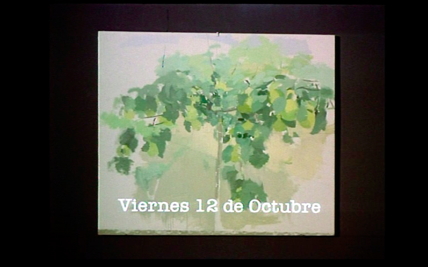 10月10日、時が進むなかでこの日二度目のホワイトアウトが起こる。夕方、アトリエの庭を映した画面が突然真っ白に飛ぶ。次第に画面全体の白飛びが抑えられる。すると画面にキャンバスが映り、それとほぼ同時にViernes 12 de Octubreと記された字幕が表示される。