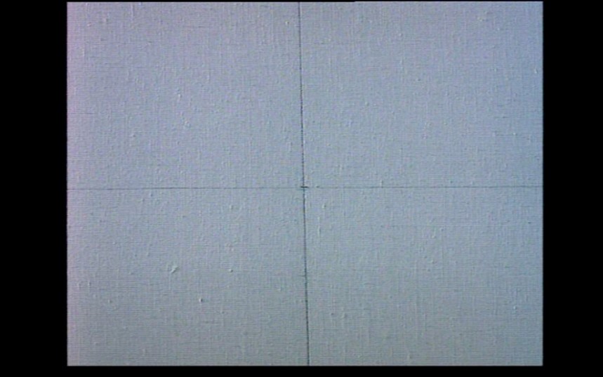 この字幕もマルメロの実に引かれた垂直線上に位置しているが、〈画家〉の引く水平線とは違い、文字列のJuevesの“J”やNoviembreの“bre”はマルメロの実の外に出ている。そのため字幕とマルメロの実に引かれた垂直線が「十字の印」として機能するのなら、パースの対象はマルメロの実ではなくマルメロの実を映した画面全体なのだろうし、画面全体のパースが取られるのであればそのパースの対応先、いわば画面に映っているものが描き写されるキャンバスのようなものが想定されるだろう。