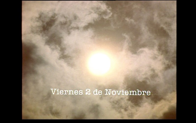 その後Jueves 1 de Noviembreと記された字幕が消える。マルメロの実を映した画面全体がしだいに白く飛んでゆく。白飛びが晴れながら太陽が顔を出し、Viernes 2 de Noviembreと記された字幕が出る。字幕が消えるとしだいに画面全体がディゾルブしつつ太陽の輝きがうっすらと黄色を帯びた白飛びから黄金色へ変化する。